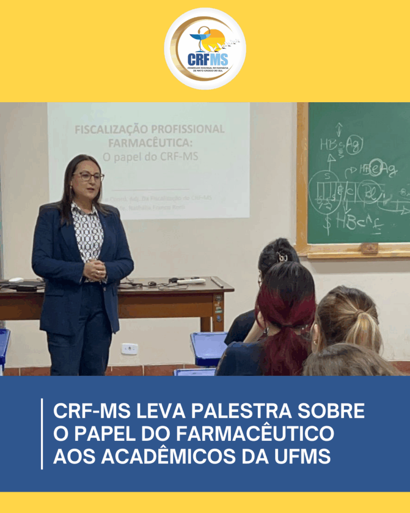 CRF-MS leva palestra sobre o papel do farmacêutico aos acadêmicos da UFMS
